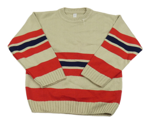 Béžovo-červeno-tmavomodrý pruhovaný svetr