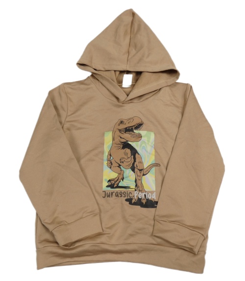 Hnědá mikina s dinosaurem a kapucí Shein