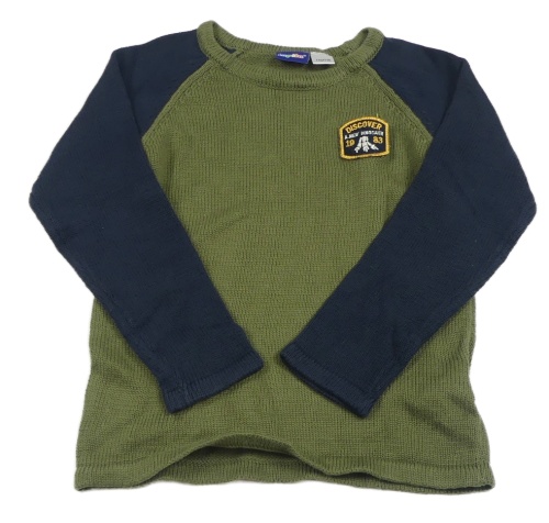 Khaki-tmavomodrý svetr s nášivkou lupilu