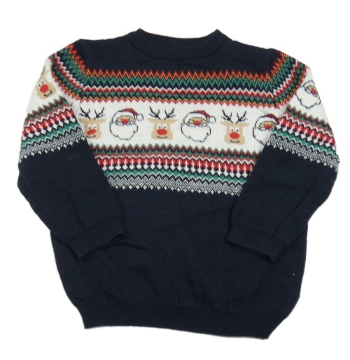 Tmavomodro-bílo-zeleno-červený vzorovaný svetr se Santou a Soby Primark