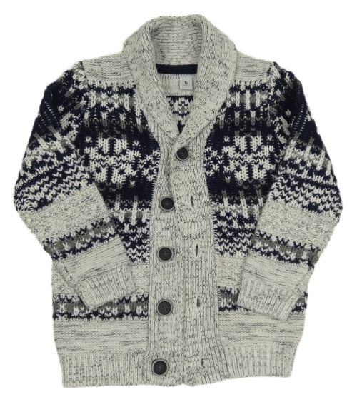 Bílo-tmavomodro-šedý vzorovaný propínací svetr TU