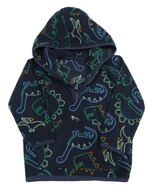 Tmavomodrá fleecová mikina s dinosaury a kapucí M&Co