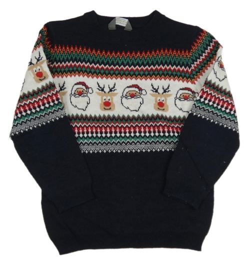 Tmavomodro-bílo-barevný svetr se Santou Primark