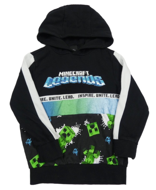 Černo-bílo-barevná mikina s Minecraft a kapucí