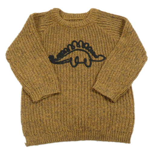 Hnědo-okrový melírovaný svetr s dinosaurem George