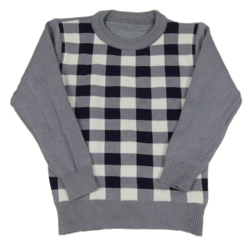 Šedo-bílo-tmavomodrý kostkovaný svetr