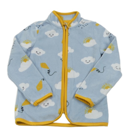 Světlemodrá fleecová propínací mikina s obláčky a draky
