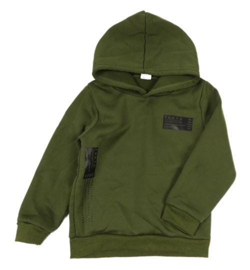Tmavokhaki teplá mikina s nápisy a kapucí