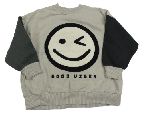 Šedá oversize mikina se smajlíkem a černými rukávy Next