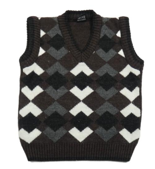 Čokoládovo-bílo-černá károvaná pletená vesta