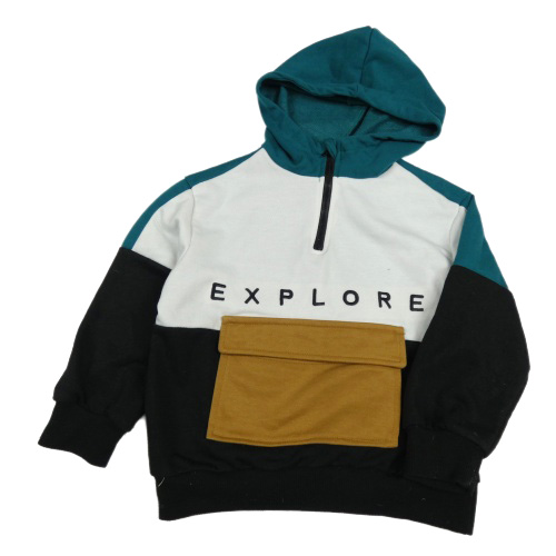 Bílo-černo-zelená mikina s nápisem a kapucí Shein