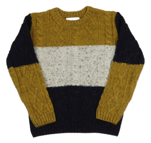 Okrovo-světlešedo-tmavomodrý melírovaný vzorovaný svetr M&S