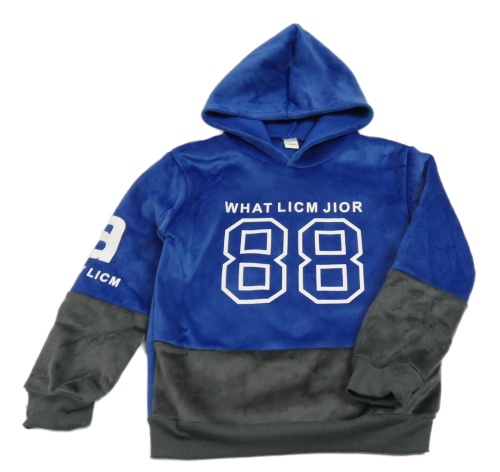 Tmavomodro/šedá plyšová teplá mikina s číslem a nápisem a kapucí