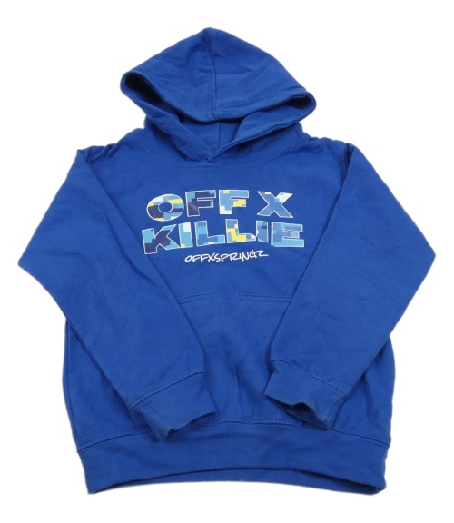 Cobaltově modrá mikina s nápisy a kapsou a kapucí AWDis