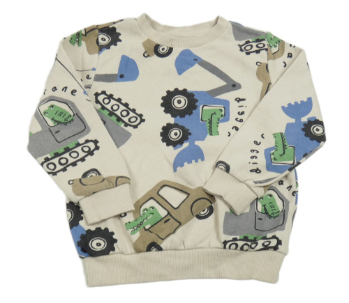 Světlebéžová mikina s auty a stavebními stroji a dinosaury a krokodýlky F&F