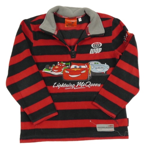 Červeno-tmavošedá pruhovaná fleecová mikina s Cars