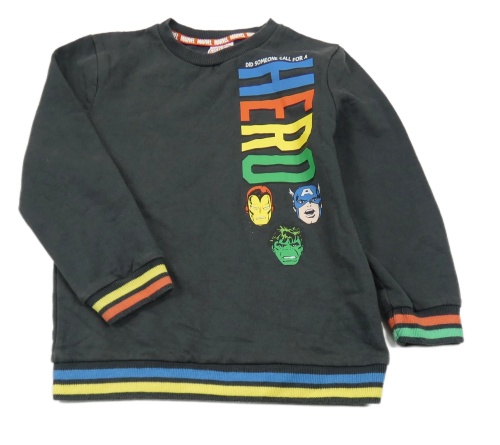 Tmavošedá mikina s barevným nápisem a superhrdiny George