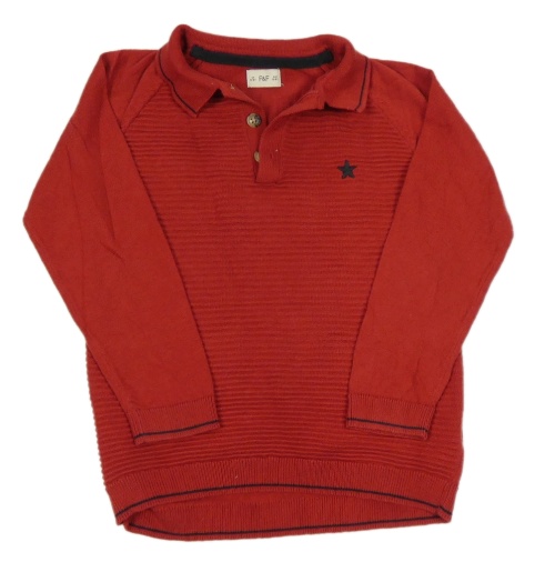 Červený žebrovaný lehký svetr s hvězdičkou a límečkem F&F