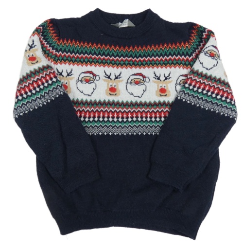 Tmavomodro-bílo-zelený vzorovaný svetr se Santou a soby Primark