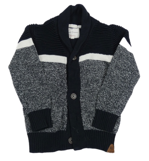 Tmavomodro-melírovano-bílý propínací svetr s límcem Jasper Conran