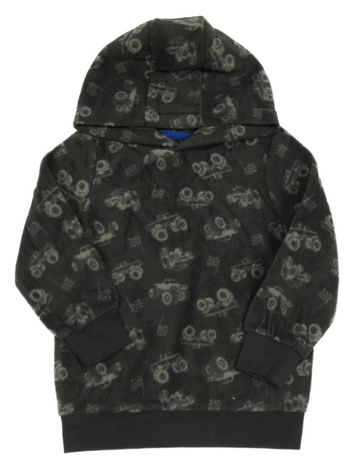 Tmavošedá fleecová mikina s monster trucky a kapucí Kiki&Koko