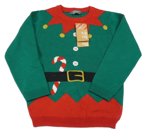 Nové - Tmavozeleno-červený svetr - Elf Primark