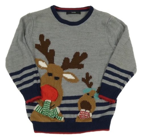 Šedo-tmavomodrý svetr se soby a pruhy George