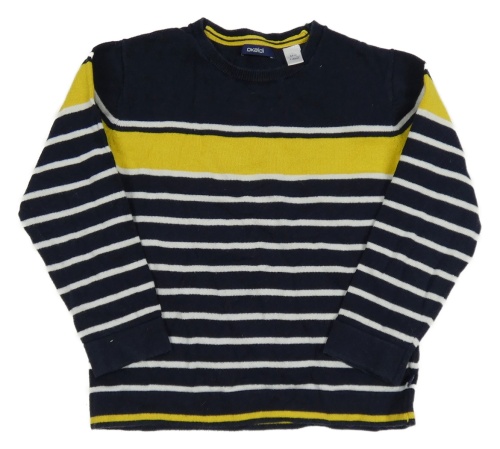 Tmavomodro-bílo-žlutý lehký svetr s pruhy Okaidi