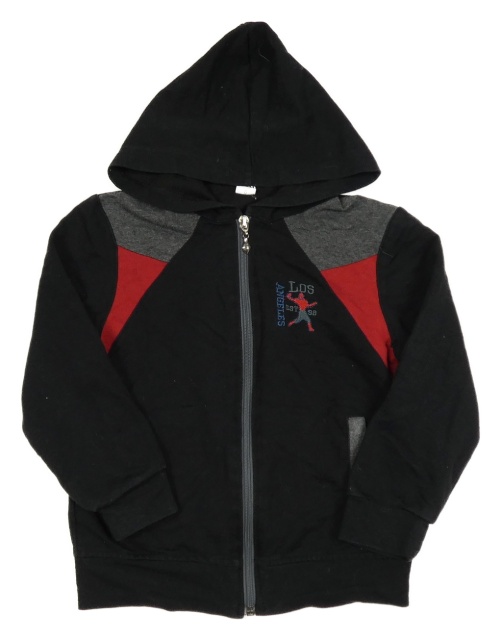 Černo-červeno-šedá propínací mikina se sportovcem a kapucí