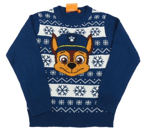 Tmavomodro-bílý pruhovaný svetr s vločkami a PAw PAtrol Nickelodeon