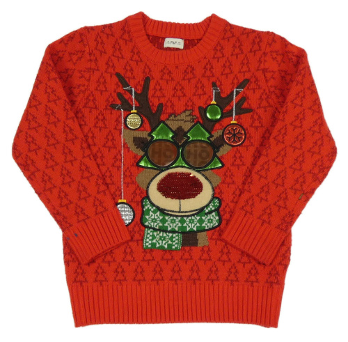 Červený vzorovaný svetr se sobem F&F