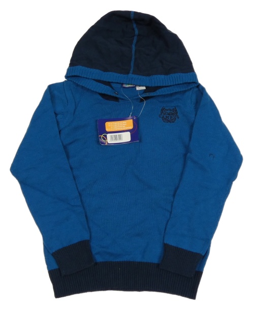 Nové - petrolejovo-tmavomodrý svetr s výšivkou a kapucí lupilu