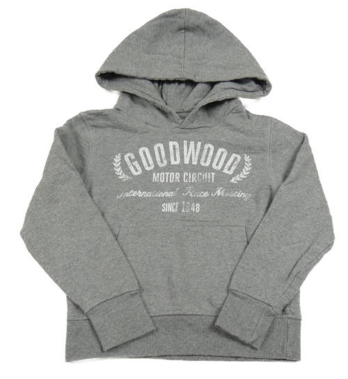 Šedá mikina s nápisy a kapucí
