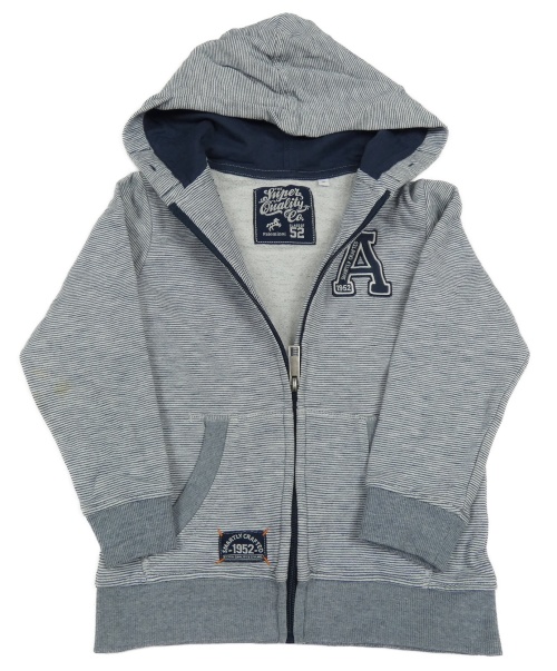 Bílo-tmavomodrá pruhovaná propínací mikina s písmenem a kapucí C&A