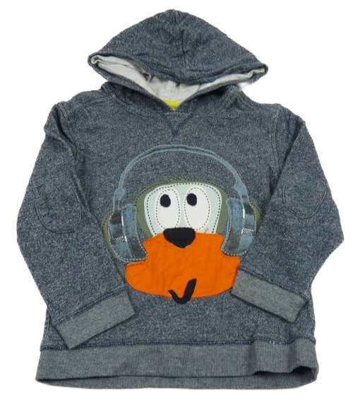 Tmavomodrá melírovaná mikina s opičkou a sluchátky a kapucí Bluezoo