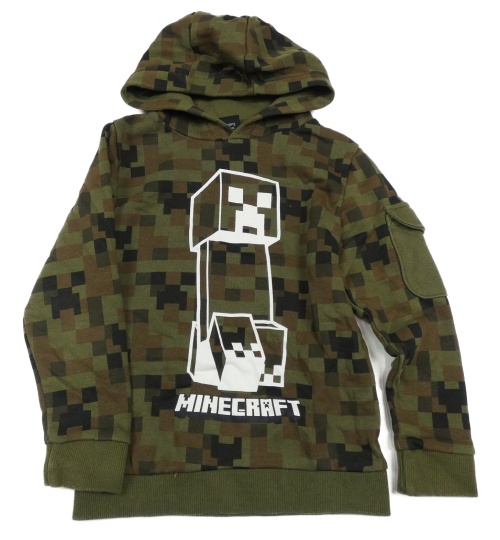 Khaki-hnědá kostkovaná mikina s potiskem a kapucí - Minecraft