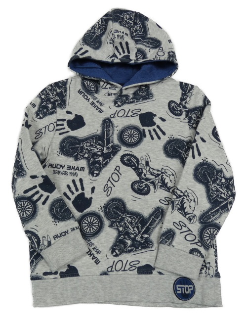 Světlešedá melírovaná mikina s motorkami a kapucí Kids