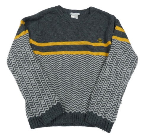 Tmavošedo-bílo/světlešedý vzorovaný vlněný svetr s hořčicovými pruhy tutto piccolo