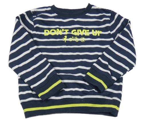 Tmavomodro-bílá pruhovaná mikina s nápisem Topolino