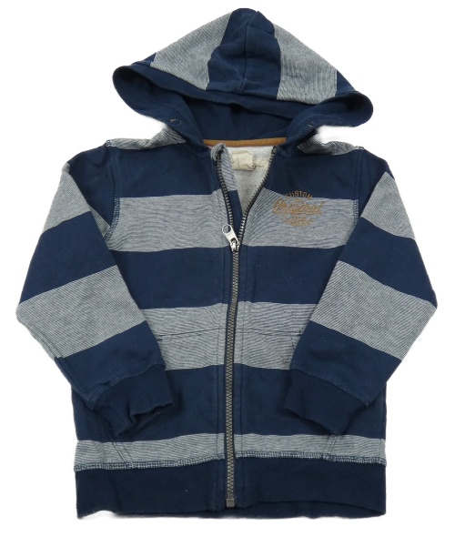 Tmavomodro-bílá pruhovaná propínací mikina s nápisem a kapucí H&M
