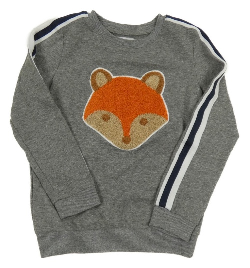 Šedá melírovaná mikina s liškou a pruhy Pocopiano