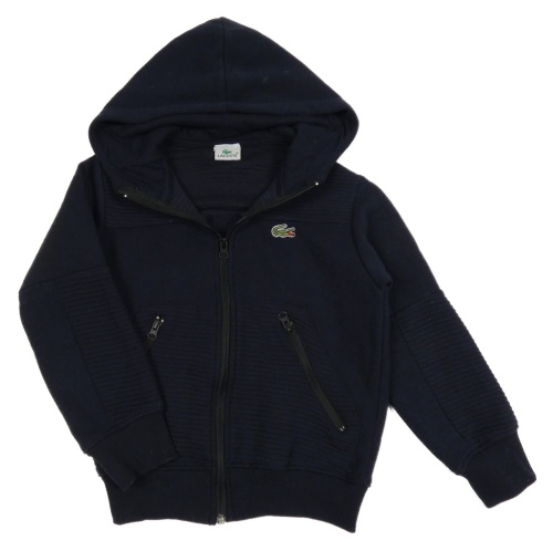 Tmavomodrá propínací mikina se žebrovanými prvky a kapucí Lacoste