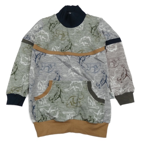 Šedo-béžovo-khaki dlouhá mikina s dinosaury