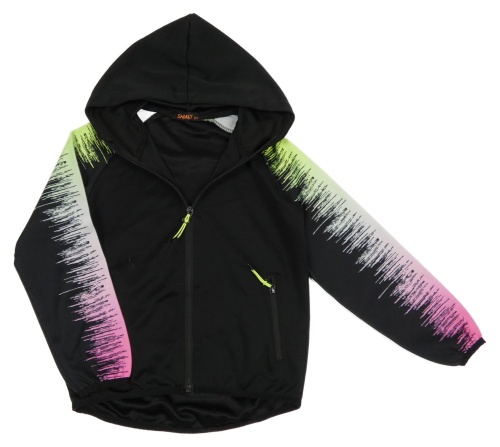 Čeerno-zeleno-barevná propínací sportovní mikina s kapucí