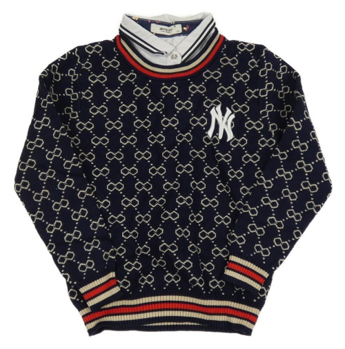 Tmavomodrý vzorovaný svetr s všitou košilí