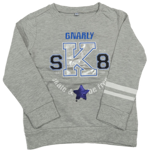 Šedá melírovaná lehká mikina s nápisem a hvězdou z flitrů Pocopiano