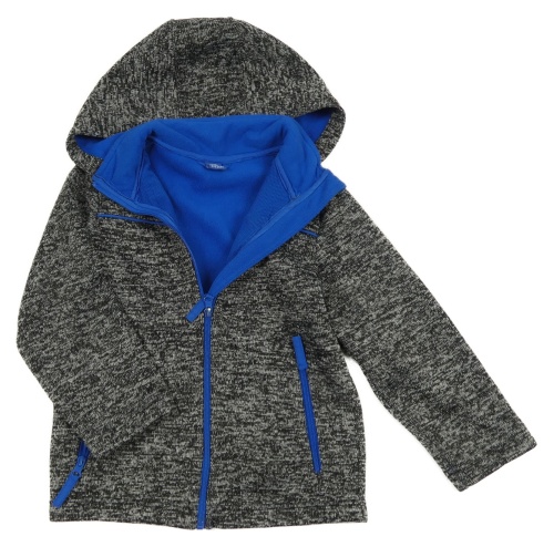 Černo-šedá melírovaná pletená propínací mikina s kapucí Kiki&Koko