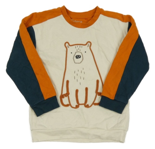 Smetanovo-oranžovo-petrolejová mikina s medvídkem Nutmeg