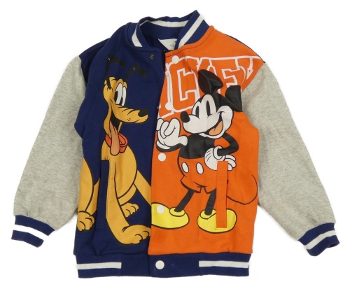 Tmavomodro-červeno-šedá baseballová mikina s Mickeym a Plutem H&M