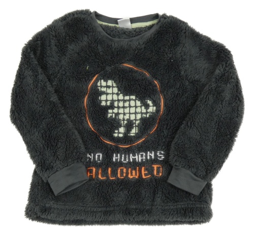 Antracitová chlupatá mikina s dinem a nápisy